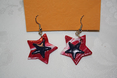 Short little post tonight. Some pics of polymer clay stars I've made. There are ornaments for hanging on a tree or rearview mirror (or wherever else you need a star). Some have been made into earrings, others into necklaces. Just a variety, mixing it up. See what you think.